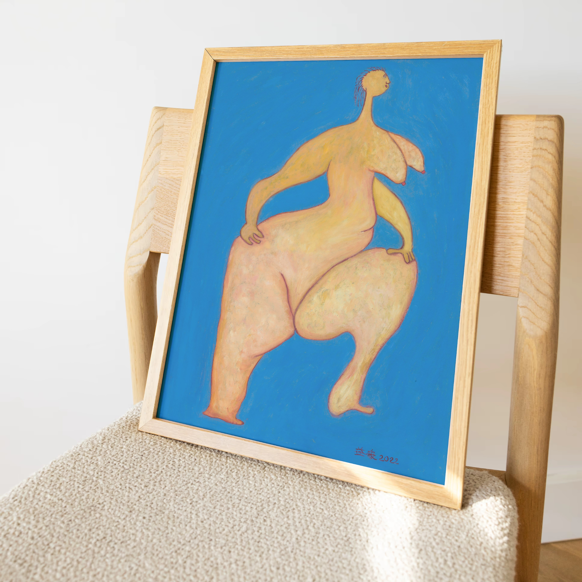 Reproducción artística que retrata una figura femenina con formas voluptuosas, líneas ondulantes y proporciones audazmente distorsionadas. La composición transmite una energía serena pero firme, celebrando la libertad corporal, el movimiento y la autoafirmación a través de una estética estilizada y poderosa.