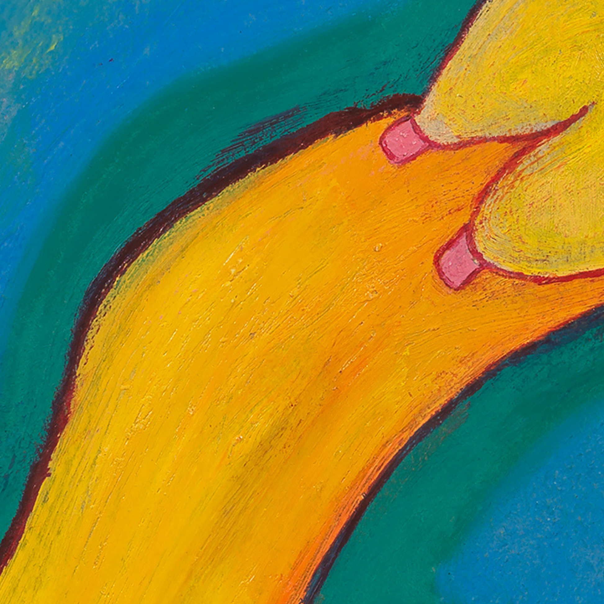 Celebración de la figura femenina a través de una composición libre, colorida y de fuerte carga emocional. La obra presenta un cuerpo estilizado y desproporcionado que se funde en formas suaves y orgánicas, desafiando las normas tradicionales del retrato y exaltando la libertad del gesto y del cuerpo.