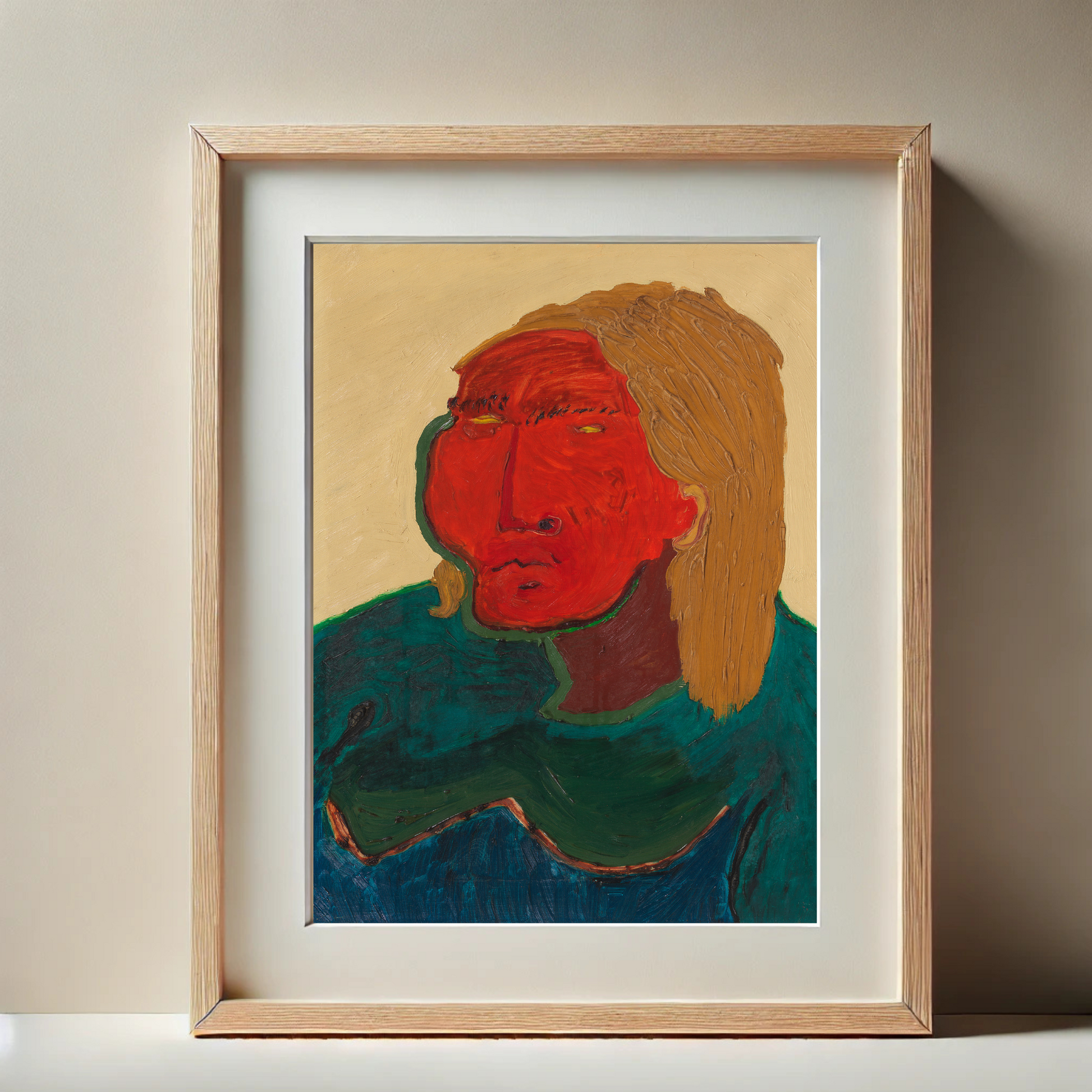 Reproducción que ofrece una reinterpretación poderosa y emocional del retrato humano. La figura representada combina fuerza visual y ambigüedad psicológica a través de una paleta de colores intensos y un tratamiento pictórico audaz.