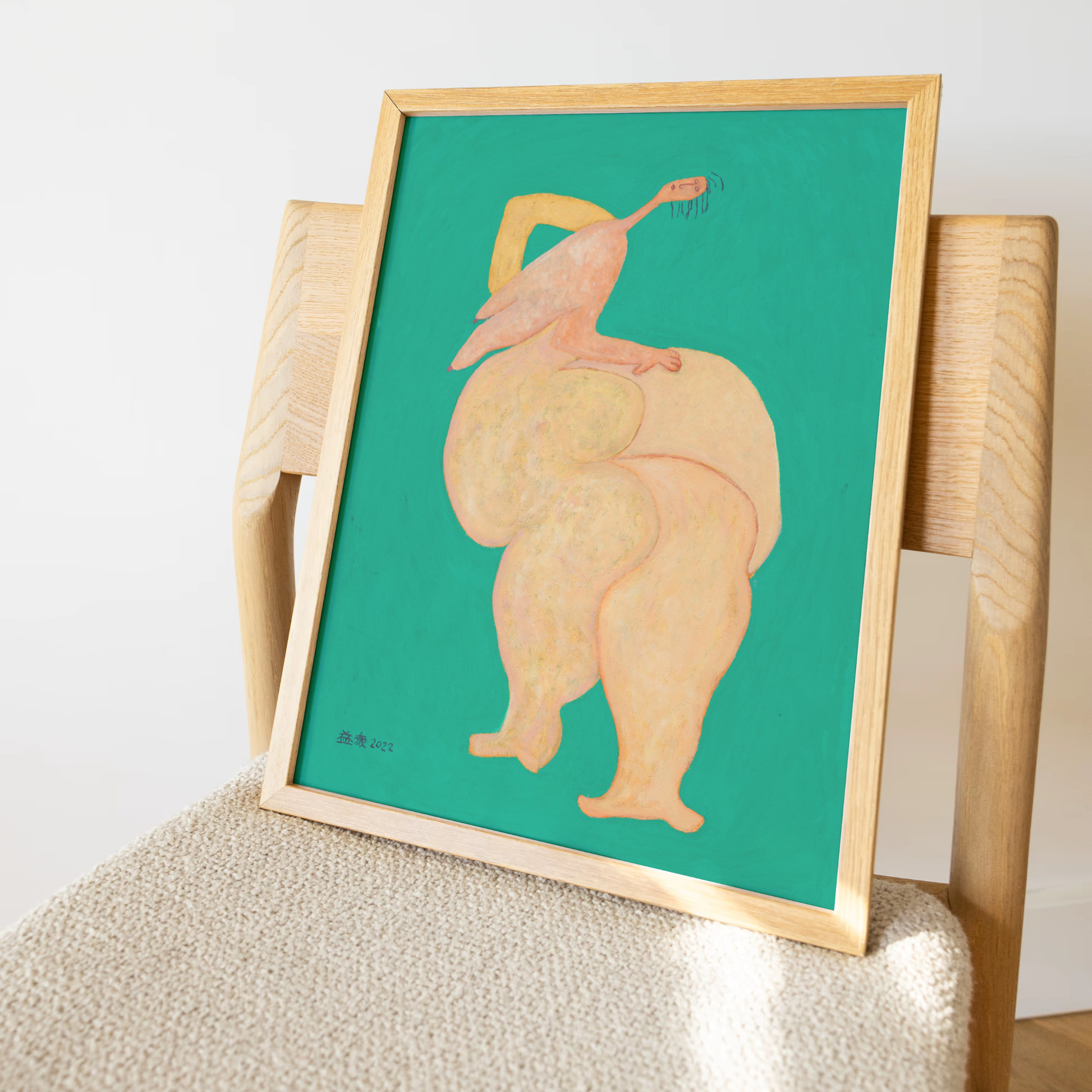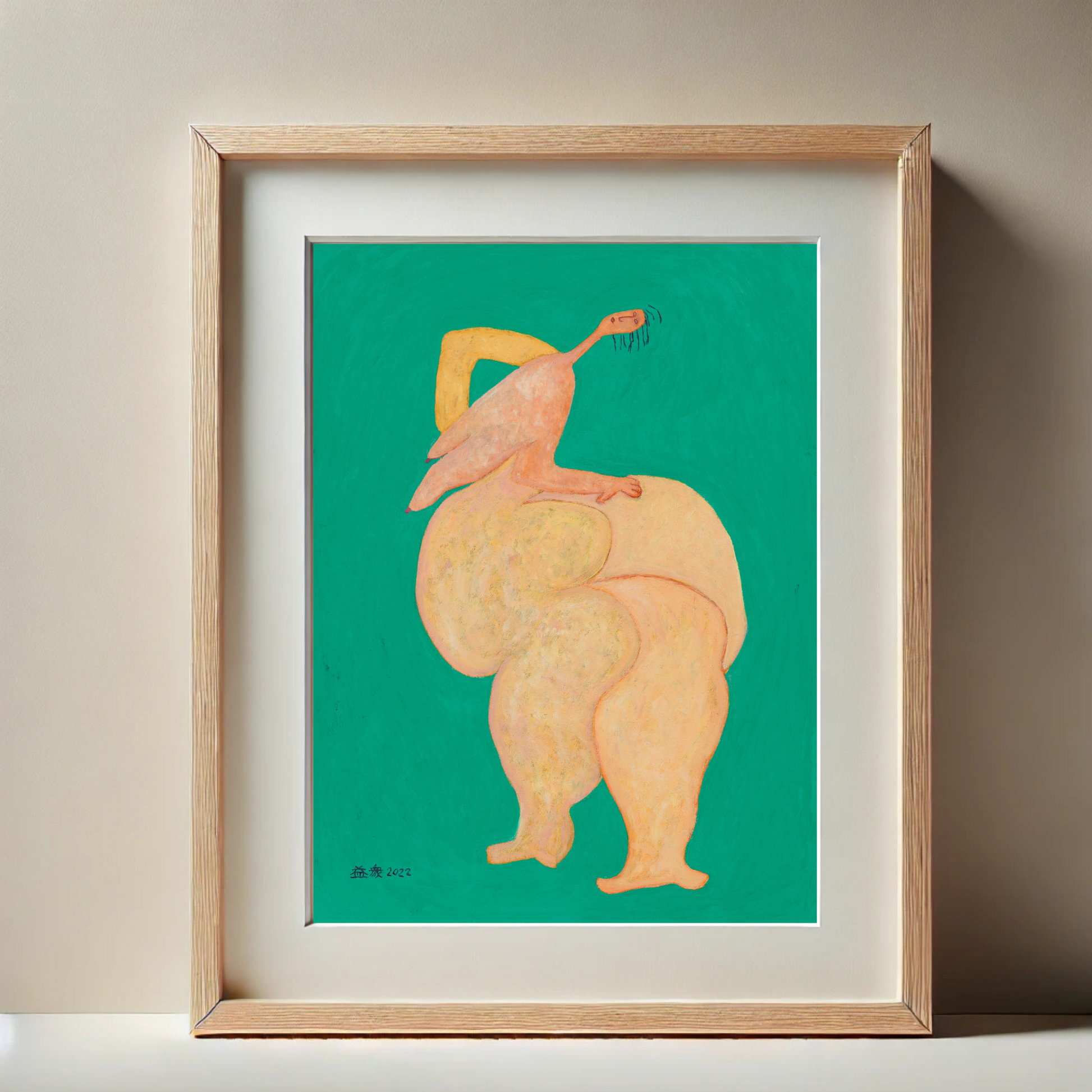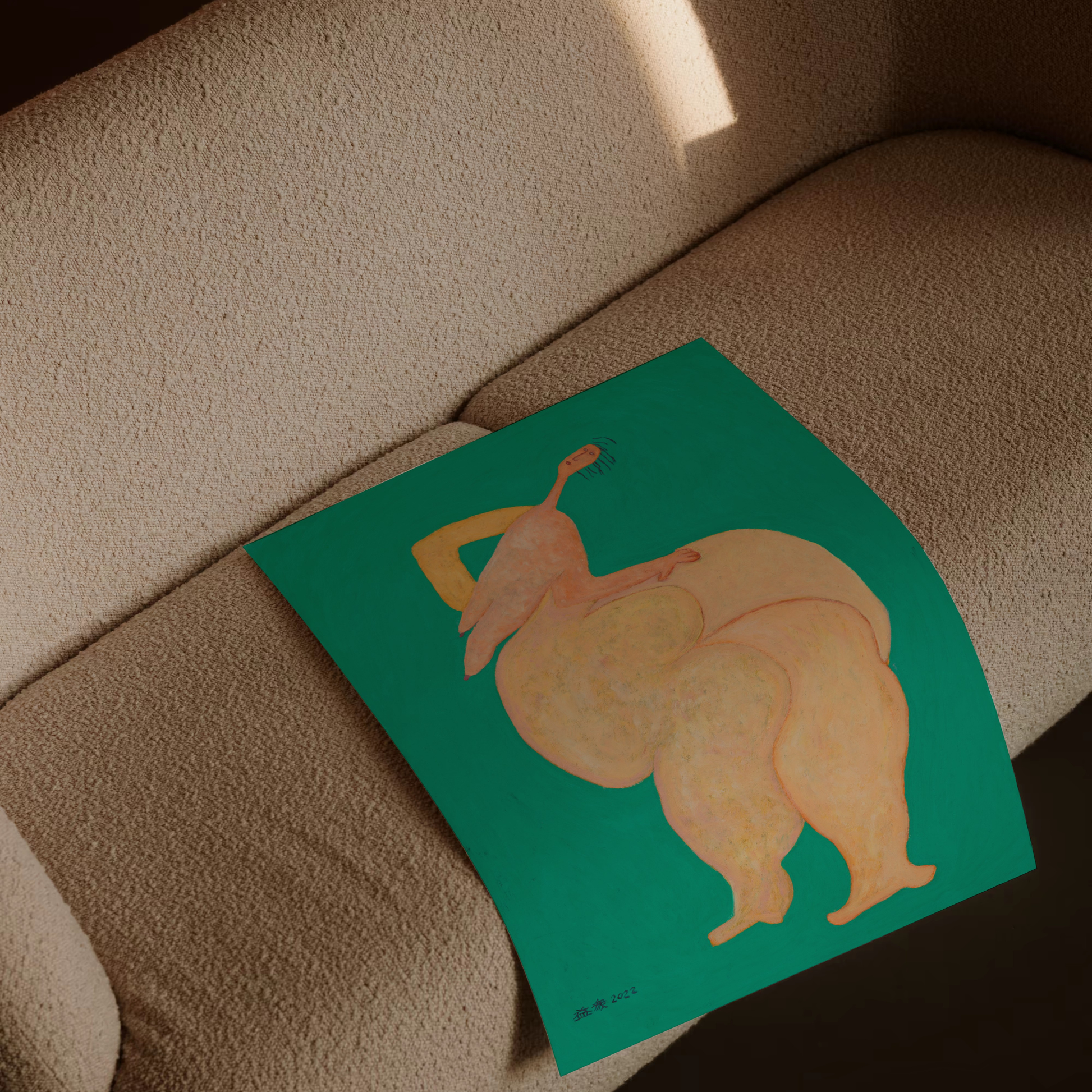Reproducción que representa una figura femenina desde una perspectiva libre y profundamente simbólica. La obra se construye a través de formas voluminosas, líneas curvas y colores cálidos, celebrando la corporalidad desde una estética audaz y emocionalmente resonante.